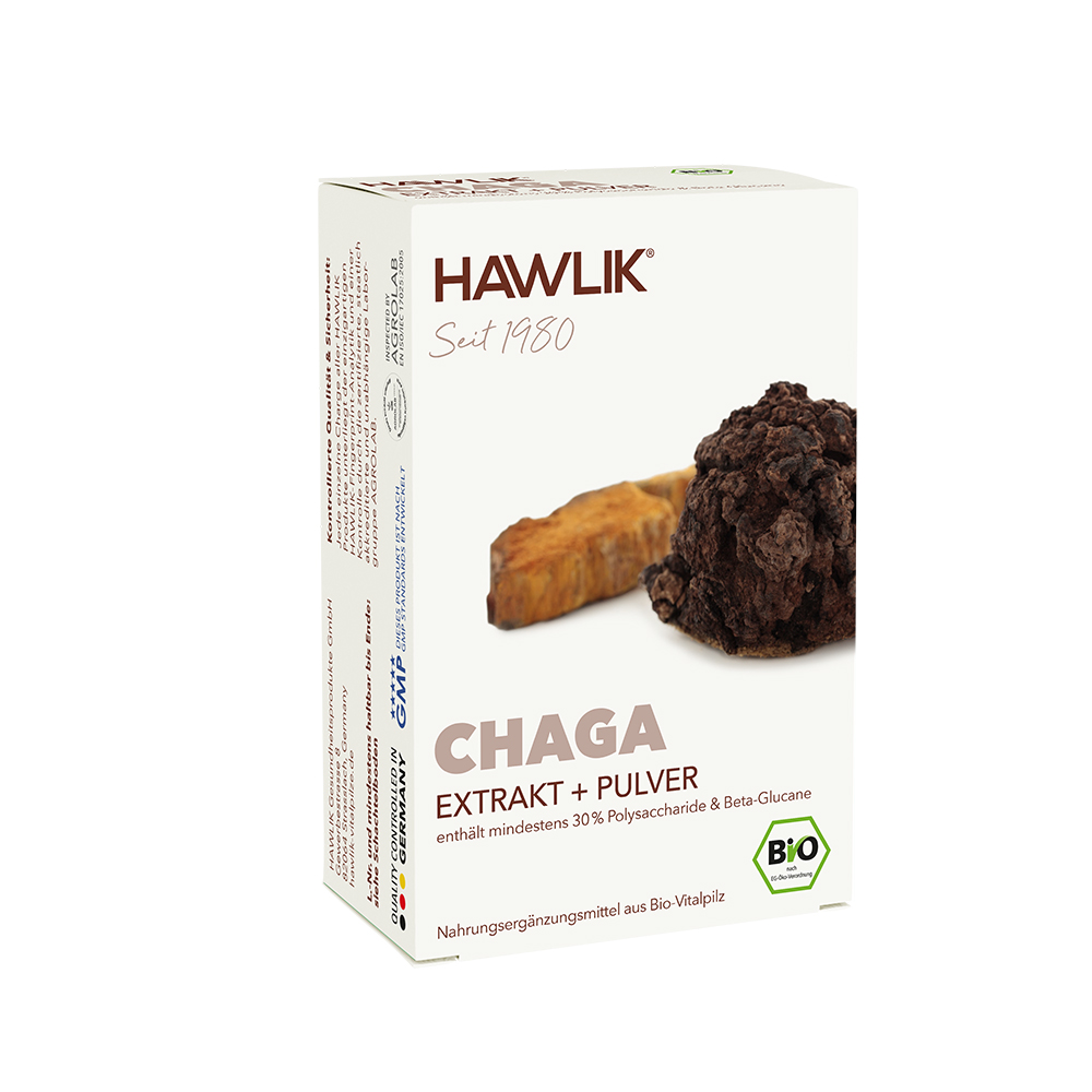 Der voll ausgereifte Pilzfruchtkörper gilt als der wertvollste Teil des Chaga. Nachdem der HAWLIK Bio Chaga in reinster Natur ausreichend Zeit zum Wachsen erhielt, wird dieser geerntet. Für das Pulver wird der Chaga schonend getrocknet und mit der Shellbroken-Methode vermahlen. Das Ergebnis ist ein superfeines Vitalpilzpulver mit allen natürlichen Bestandteilen.